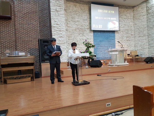 최종수 집사님의 사회와 이형주 집사님의 기도와 김선자 집사님께서 성경봉독을 하셨습니다.
