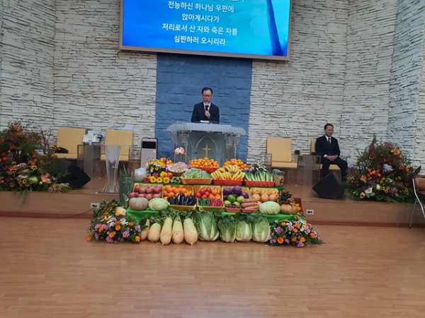 2023, 11, 19일(주일) 추수감사주일 저녁예배를 담임목사님 말씀 인도로 1부 예배를 마치고