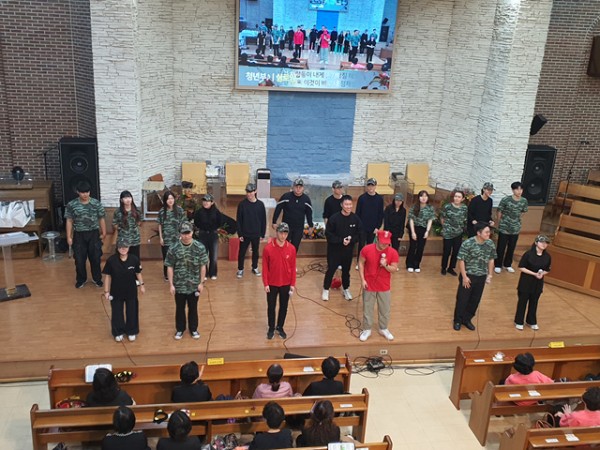 2부 순서로 오준호, 김수진 청년의 사회로 기관별 찬양 경연대회를 하였습니다..