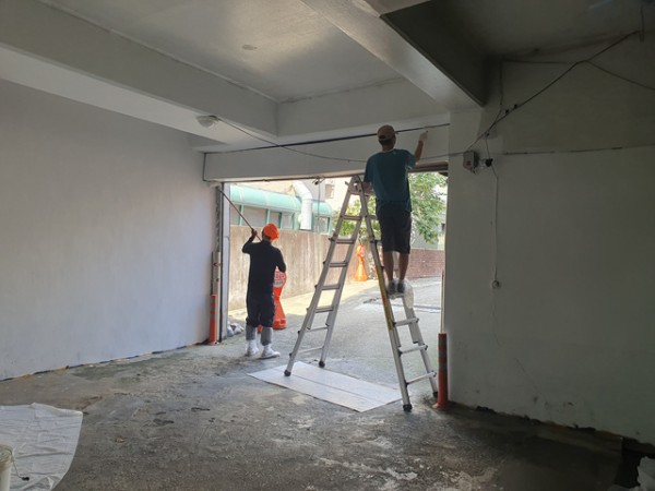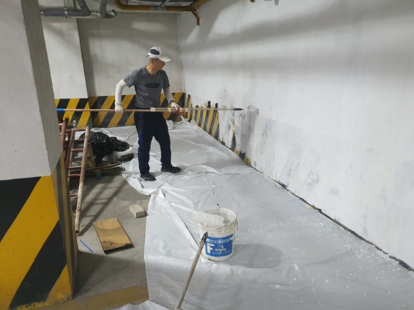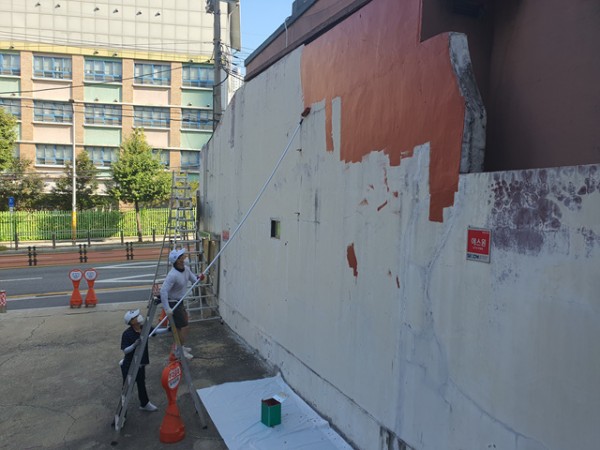 벽면에 먼지를 제거하고 페인트 공사를 하는 동안